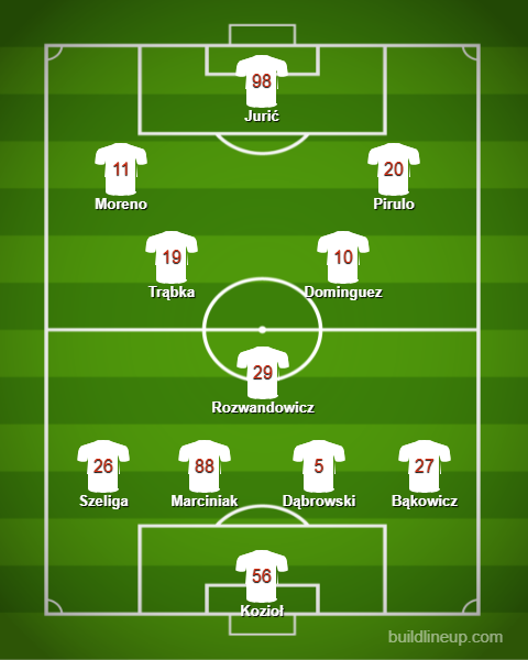 Bardzo dobry mecz przeciwko Miedzi zagrał debiutujący od pierwszej minuty Mieszko Lorenc, więc i jemu fatum nie mogło odpuścić. Do szatni schodził z urazem, przeciwko Podbeskidziu w kadrze już go nie było. Podobnie zresztą jak i Stipe Juricia oraz Javiego Moreno, tej dwójki też do swojej dyspozycji we wczorajszym meczu Kibu Vicuna nie miał.