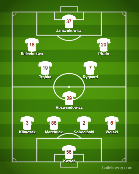 Co zatem jasne, trener ŁKS-u musiał zacząć kombinować. W dwójce środkowych obrońców obaj lewonożni – Sobociński i Marciniak – na prawej stronie ponownie cofnięty Maciej Wolski, na lewej nominalny prawy obrońca – Bartosz Szeliga. Pomieszanie z poplątaniem, ale trener Vicuna w zasadzie nie miał z czego kleić. ŁKS grał w zasadzie wyłącznie tymi, którzy byli zdrowi.