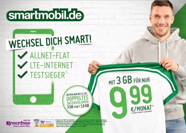 Dostawca usług mobilnych smartmobil.de został partnerem Lukasa Podolskiego także w 2017 roku. „Komunikacja ma kluczowe znaczenie na boisku piłkarskim i poza nim”, pod takim hasłem ogłaszano współpracę pomiędzy stronami. Podolski jest twarzą kampanii skierowanej do młodych użytkowników aktywnie korzystających z internetu. Współpraca ze smartmobil.de dotyczyła nie tylko użyczenia wizerunku, ale także aktywnego uczestnictwa w reklamach sponsora oraz w ramach umowy wsparcia fundacji zawodnika.
