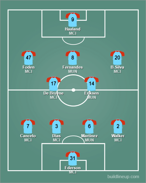Rodri, Kalvin Phillips, Phil Foden, Bernardo Silva, Ilkay Guendogan, Kevin De Bruyne, a także Casemiro, Christian Eriksen i Bruno Fernandes. Oto dziewiątka piłkarzy, którzy swoimi umiejętnościami zasługują na znalezienie się w omawianej jedenastce. W prawie każdym zespole na świecie tacy zawodnicy spokojnie znaleźliby swoje miejsce w pierwszym składzie. Tu liczba miejsc jest ograniczona i mała, patrząc na potencjał tych graczy. Ostatecznie zmieściła się cała piątka: trójka z Manchesteru City i dwójka z United.