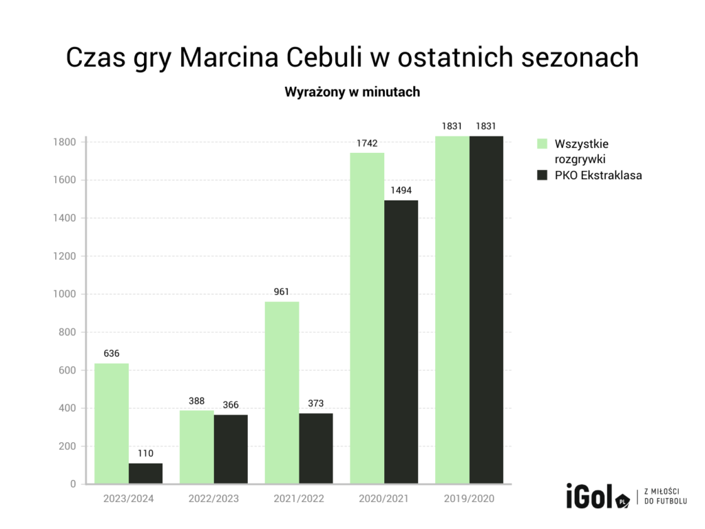 Marcina Cebula i kontuzje w ostatnich latach byli ze sobą za pan brat. Ostatni sezon, w którym byłemu graczowi Korony Kielce udało się rozegrać co najmniej 1000 minut, rozpoczął się trzy lata temu. I to też nie był wynik wybitny, bo było ich około 1700 we wszystkich rozgrywkach. Dla porównania kolega z drużyny Marcina Cebuli – Fran Tudor – ma w tym sezonie już 910 minut, a przypominamy o tym, że wciąż jest sierpień.