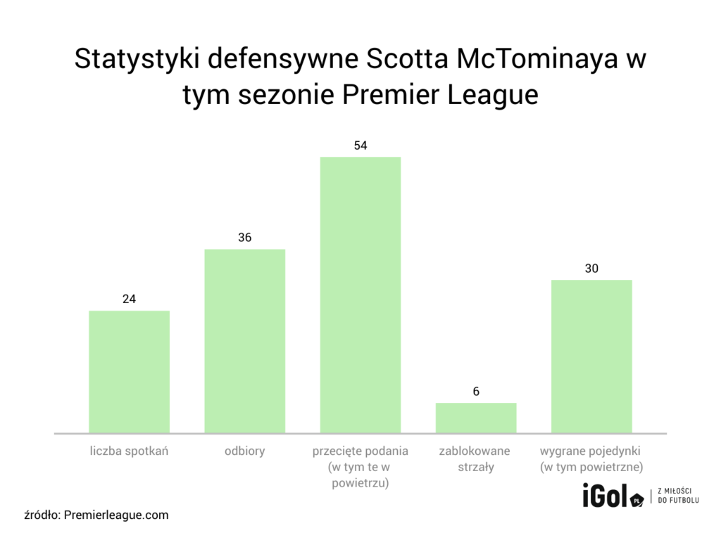 Tu również Scott ma się czym popisać. Nie dość, że mówi to po raz kolejny o jego niezwykłej wszechstronności, to jeszcze robi wrażenie, gdy przyjrzymy się liczbie bramek, jakie Szkot strzelił. McTominay jest czwartym najskuteczniejszym piłkarzem „Czerwonych Diabłów” z czterema bramkami w ligowych rozgrywkach. Taki sam dorobek posiada Anthony Martial, lecz jak wszyscy dobrze wiemy, jest to zawodnik stricte ofensywny.