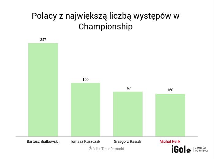 Stanie się tym samym najlepszym polskim piłkarzem z pola pod względem występów w Championship. Tuż przed nim będzie jedynie dwóch bramkarzy, w tym niekwestionowany lider tej statystyki, czyli Bartosz Białkowski. Jedna z legend tej ligi ma na swoim koncie aż 347 występów i trudno będzie ten dorobek wyrównać. Zdecydowanie łatwiej będzie przesunąć się tuż za jego plecy, przeskakując Tomasza Kuszczaka, który w Championship rozegrał 199 spotkań. Chociaż mając na uwadze fakt, że Helik ma dopiero 29 lat, to kto wie, ile jeszcze zdoła grać na tym poziomie. Wszystko jest możliwe.