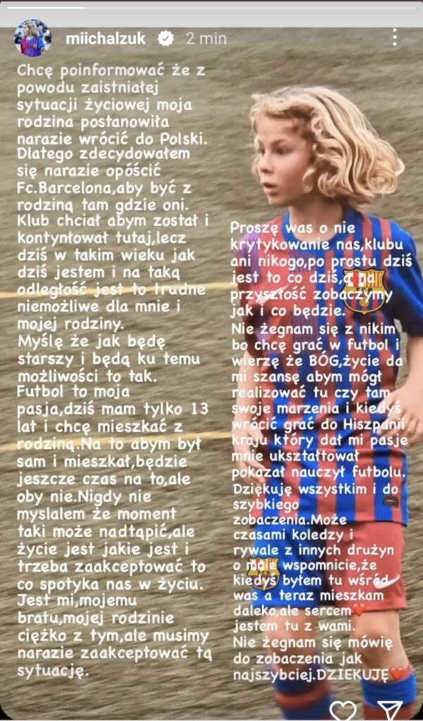 Tych dwóch chłopców fanowi piłki nożnej w Polsce raczej nie trzeba przedstawiać. Zaledwie 13-letni Michał i jego młodszy brat Miłosz to dziecięce talenty prosto z Barcelony, pomimo tak młodego wieku jest już o nich głośno od kilku lat. Starszy z braci trenował w słynnej szkółce La Masia, natomiast młodszy – w Gironie. Jest to filia angielskiego Manchesteru City. Obaj mają wielki talent, Michał został okrzyknięty nawet „polskim Messim”. Dziennikarz Jaume Marcet uznał Michała za jednego z najbardziej utalentowanych chłopców trenujących w La Masia.