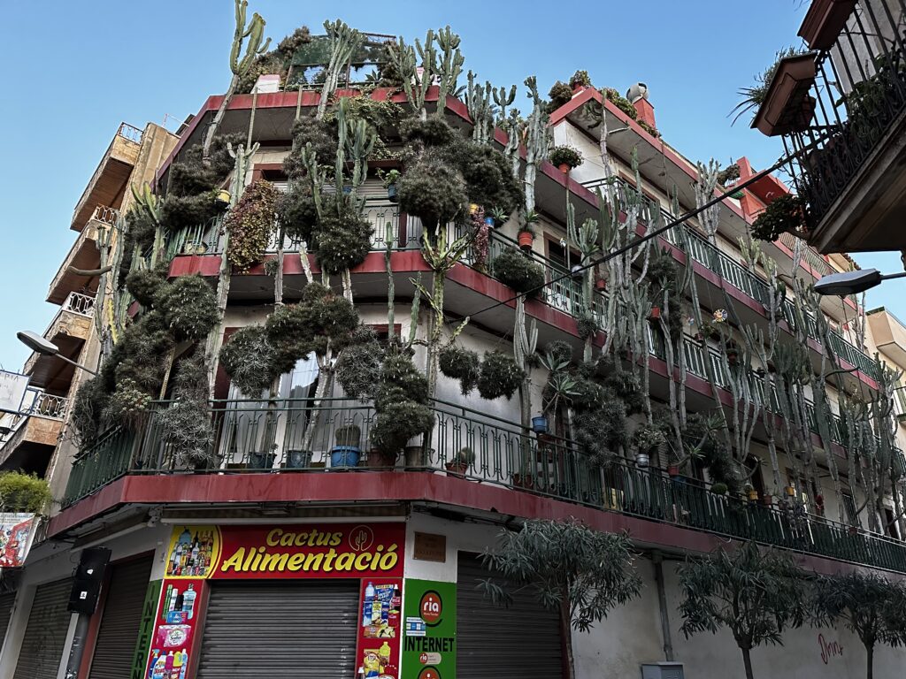 Pierwszy dzień to głównie zapoznanie się z Calellą, która jest bardzo urokliwym nadmorskim miasteczkiem. Duża liczba wąskich uliczek wypełnionych sklepami robi bardzo fajne wrażenie. Można tam zobaczyć wszystko. Od rzeczy nietypowych jak ta kaktusowa kamieniczka: