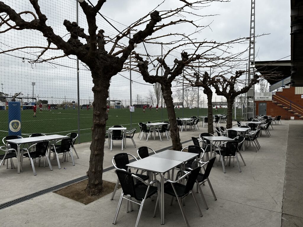 Treningi odbywały się zarówno na sztucznej, jak i naturalnej nawierzchni na pięknie położonych kompleksach piłkarskich. Sztuczną murawę mieliśmy w CE Premia de Dalt położone 25 minut drogi od Calelli. To niewielki kompleks posiadający dwa pełnowymiarowe boiska i dwie niewielkie trybuny.