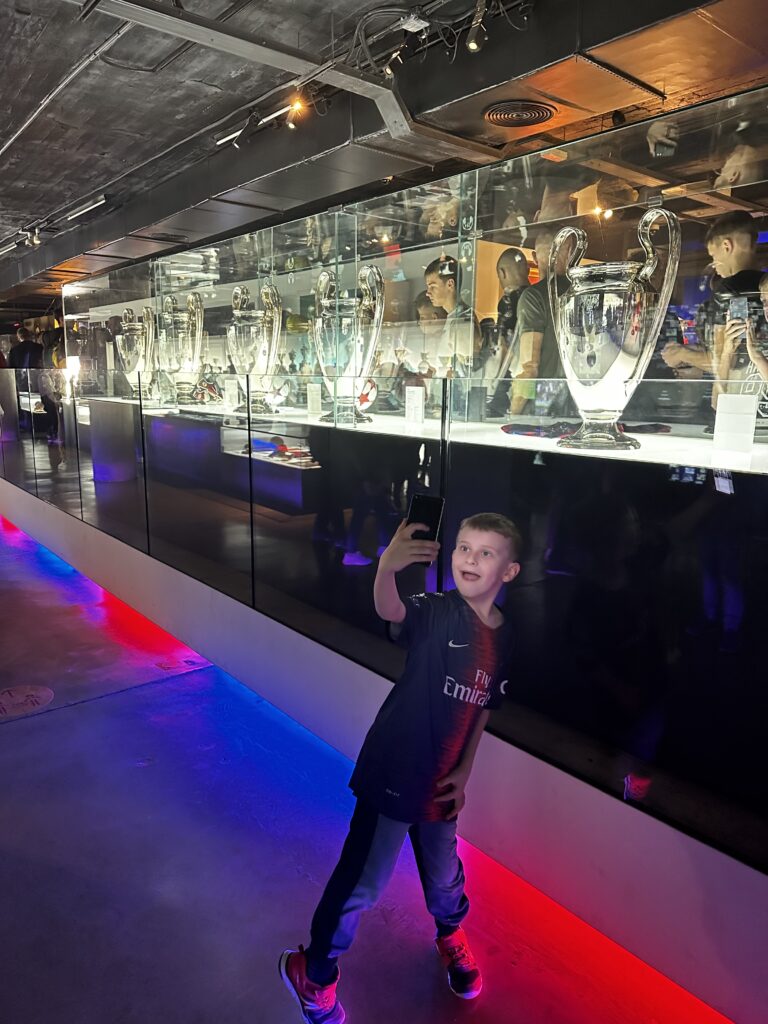 Samo zwiedzanie rozpoczęliśmy od całkiem sporej sali z trofeami. Można było podziwiać wszystkie puchary i medale, które „Barca” zdobywała przez wszystkie lata swojego istnienia. Największą uwagę przykuwały oczywiście te z wielkimi uszami, które wszyscy dobrze znacie.