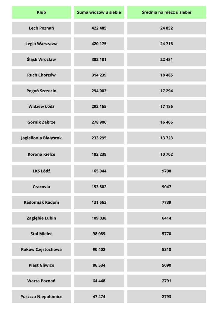 W ostatnim czasie moda na kibicowanie klubom PKO BP Ekstraklasy wraca. Coraz więcej ludzi chce spędzać wolny czas razem z polskimi klubami czy to przed telewizorem, czy na stadionie. Mimo słabszego poziomu i tak konkurujemy z najlepszymi ligami na świecie. Dzisiaj sprawdzimy, jakie zainteresowanie miały w tym roku karnety i koszulki oraz jaką frekwencję generują kluby PKO BP Ekstraklasy.