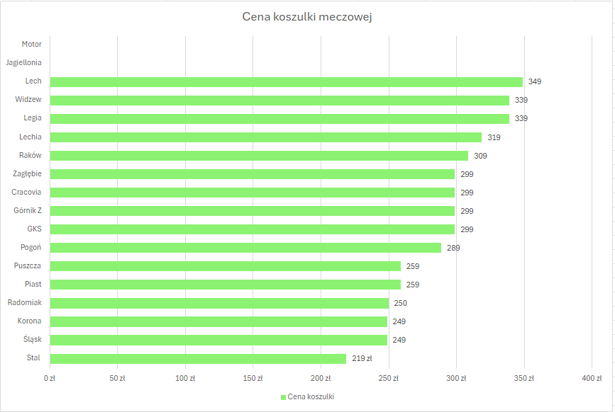 Ceny koszulek klubów PKO BP Ekstraklasy bardzo się od siebie różnią i wahają się od ponad 200 zł do prawie 350 zł. Najtańsze trykoty oferuje Stal Mielec, kosztują one 219 zł, a najdroższe ma Lech Poznań — za nie trzeba zapłacić 349 zł. Cena może powalać z nóg, ale to nie wszystko, bo do koszulki można dodać sobie branding ekstraklasy lub rozgrywek europejskich oraz nazwisko danego zawodnika za dodatkową opłatą.