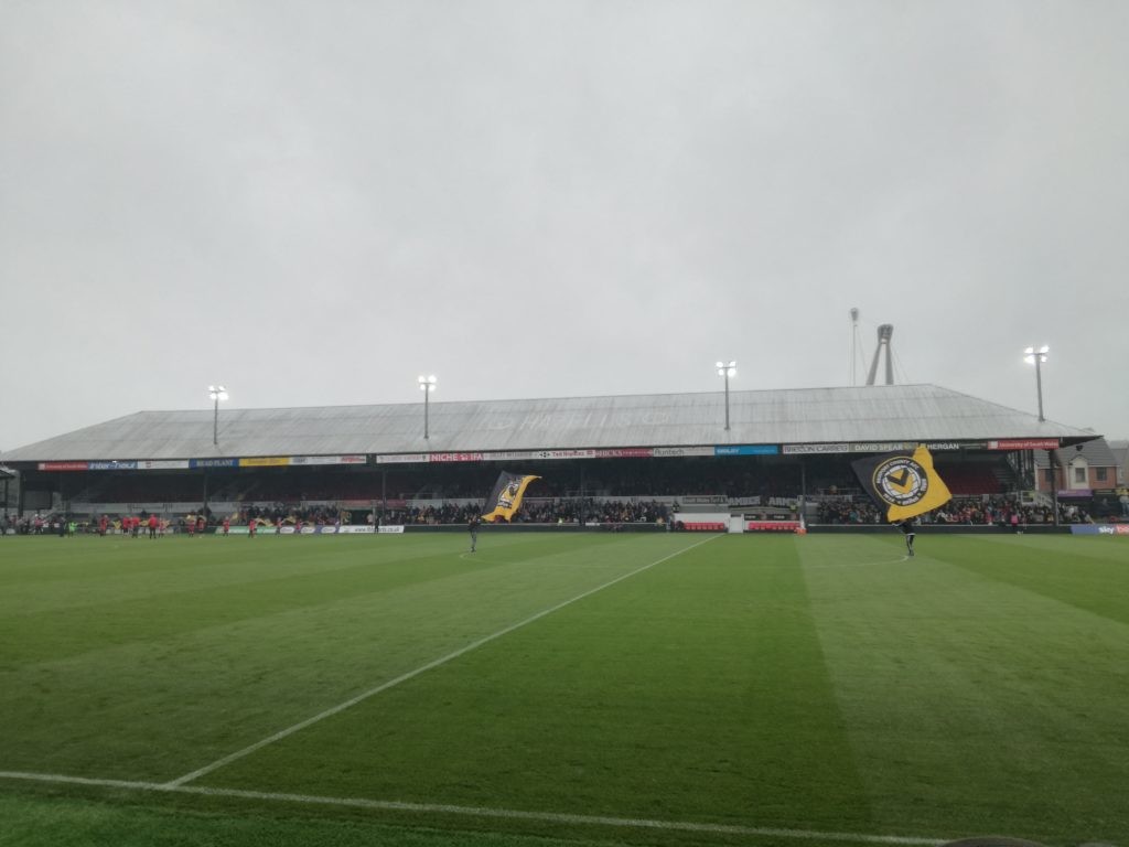 Po prostu nie byłbym sobą, gdybym w wolny dzień nie wykorzystał takiej okazji i nie udał się na mecz. Z dostaniem się na stadion nie było żadnego problemu, bowiem jest on położony samym sercu tej ponad stutysięcznej miejscowości, tuż nad rzeką Usk.