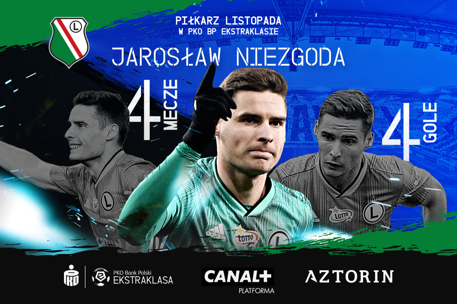 Jarosław Niezgoda najlepszym piłkarzem listopada w PKO Ekstraklasie. Napastnik Legii Warszawa w zeszłym miesiącu czterokrotnie wpisywał się na listę strzelców. Ów wyczyn należało docenić, gdyż legionista na zdobycie czterech trafień potrzebował raptem 262 minut na 360 możliwych! Napastnik obecnych wicemistrzów Polski w tym sezonie nie łapie zbyt wielu minut. Na możliwych do rozegrania 1620 minut … Czytaj dalej Jarosław Niezgoda piłkarzem listopada PKO Ekstraklasy