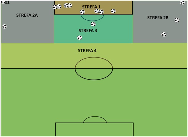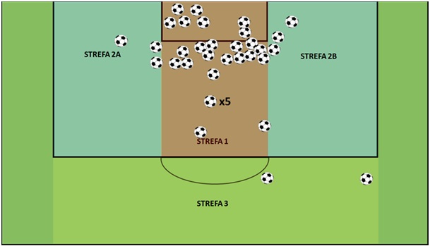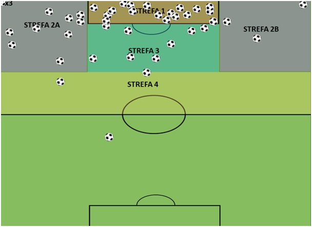 - miejsce, skąd zostały zdobyte bramki,