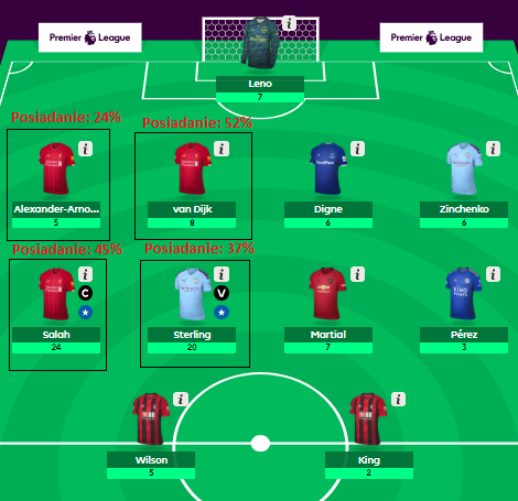 A propos United – sam mam w składzie Martiala. W FPL jest pomocnikiem za 7,5, natomiast w przedsezonowych sparingach grał jako najbardziej wysunięty napastnik – to był główny czynnik, który zachęcił mnie do jego kupna. Wczoraj siedem punktów – przyzwoity wynik i na pewno pozostanie w składzie przez jakiś czas.