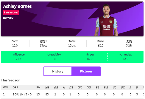 Z napastników Burnley popularniejszym wyborem był Wood, ale to właśnie Barnes dwa razy zaskoczył Bednarka i spółkę. Szczególnie Vestergaard wypadł fatalnie w defensywie „Świętych”. Barnes na pewno jest kandydatem do transferu od 5. kolejki, gdy zaczną mu się łatwiejsze mecze.