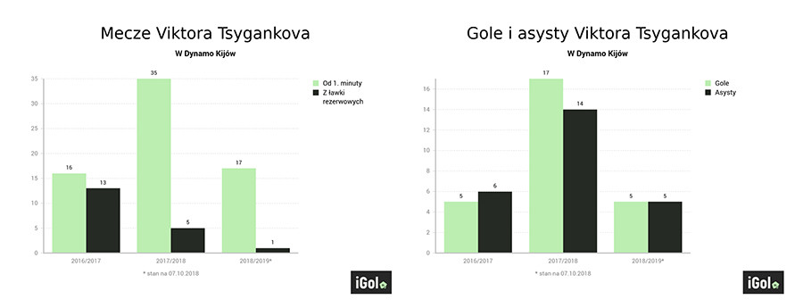 W listopadzie skończy 21 lat, a na swoim koncie ma już gola zdobytego w Lidze Mistrzów. Dla swojego klubu rozegrał już blisko 90 spotkań, ale jeszcze nie udało mu się zdobyć krajowego mistrzostwa. W wieku młodzika walczyły o niego Szachtar Donieck i Dynamo Kijów. Wybrał tych drugich i pewnie do dzisiaj nie żałuje swojej decyzji. Ma za sobą debiut w reprezentacji Ukrainy, ale jeszcze nie jest jej kluczowym ogniwem. Viktor Tsygankov to przyszłość naszych wschodnich sąsiadów.