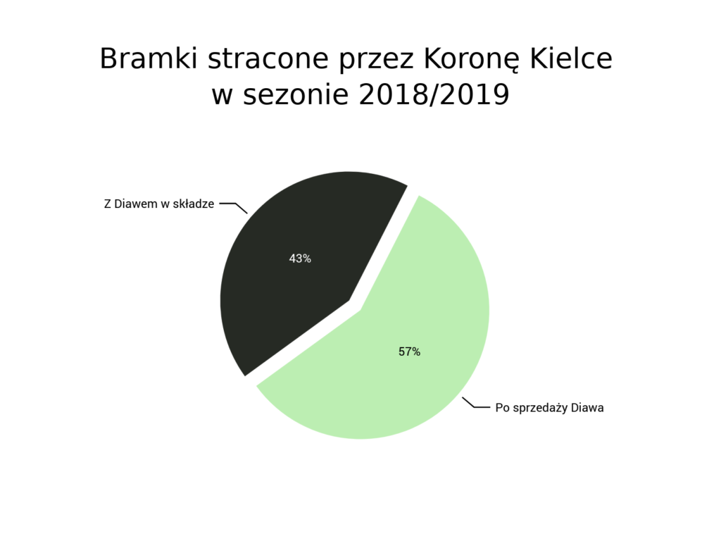 W 17 spotkaniach rozegranych na wiosnę Korona Kielce straciła 31 bramek, ponosząc tak kompromitujące porażki jak m.in. w domowym starciu z Wisłą Kraków, w którym zespół Gino Lettieriego poległ 2:6. Za Senegalczykiem szybko w Kielcach zatęskniono. Z Djibrilem Diawem w składzie zespół z Suzuki Areny również tracił bramki, lecz znacznie mniej – 23 w 20 spotkaniach. To średnio o 0,67 gola na mecz po stronie wpuszczonych goli.