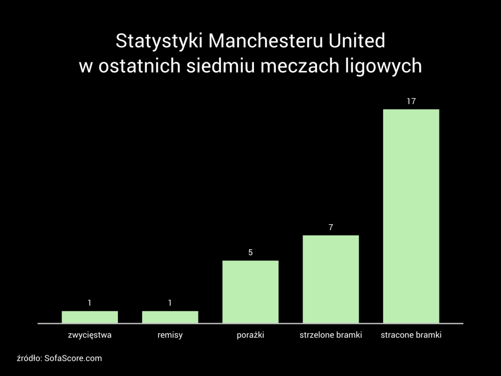 W ostatnich siedmiu meczach w Premier League „Diabły” wygrały tylko raz. Dodatkowo jedynym zespołem, który pokonały, był koszmarny wtedy Tottenham, prowadzony po raz ostatni przez Nuno Espirito Santo. Zwycięstwo, co prawda okazałe, bo aż 3:0, ale niezwykle zakrzywiające ówczesny obraz drużyny.