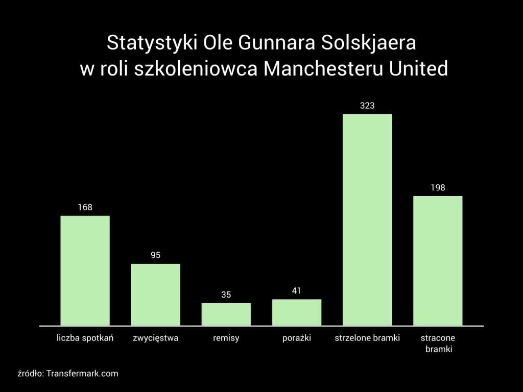 Na poniższym zestawieniu widzimy statystyki Solskjaera w roli szkoleniowca Manchesteru United, które przez ostatnie słabe wyniki zostały mocno zaniżone.
