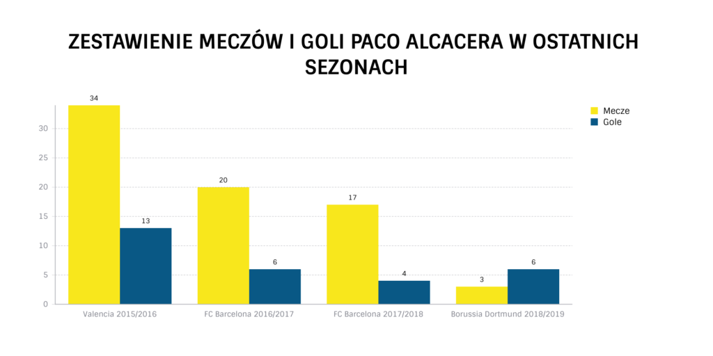 Paco Alcacer imponuje od początku tego sezonu skutecznością strzelecką. Podczas przerwy reprezentacyjnej zdobył dwa gole z Walią w meczu towarzyskim oraz bramkę z Anglią w spotkaniu rozgrywanym w ramach Ligi Narodów. Za to w ostatniej kolejce ligowej z Augsburgiem (wygranym 4:3) Hiszpan skompletował hat tricka. Tym samym objął fotel króla strzelców Bundesligi z dorobkiem sześciu goli. Zadziwia fakt, że potrzebował do tego jedynie 81 rozegranych minut, co daje kosmiczną średnią bramki co około 13 minut.