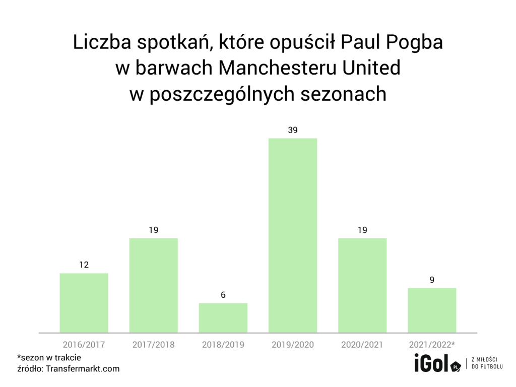 Pogba jest dalej docenianym przez zarząd klubu piłkarzem. Dodatkowo odpowiednio rozumie się z zawodnikami z szatni. Dość często natomiast opuszczał spotkania na przestrzeni ostatnich lat. Tylko w sezonie 2018/2019 było ich mniej niż dziesięć. Przez to też nie był w stanie ustabilizować swojej silnej pozycji w drużynie.