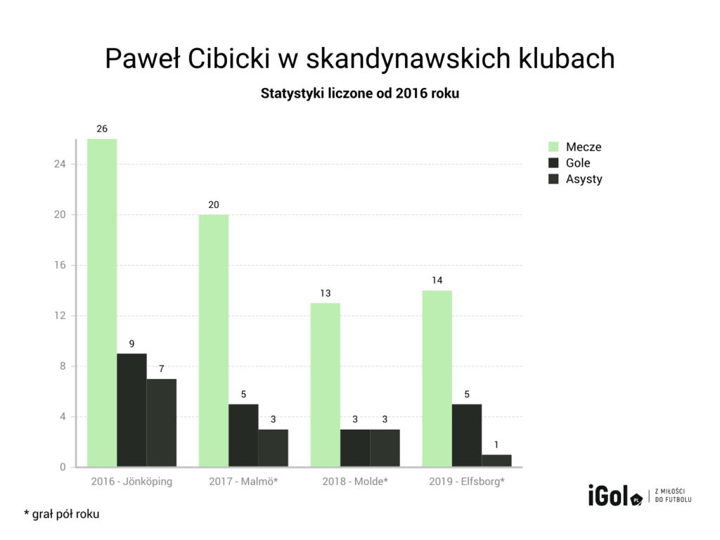 Do tej pory Paweł Cibicki nie grał dobrze poza Skandynawią. Wszystko mogło mieć związek z tym, że grając w Szwecji, miał blisko siebie rodzinę. Też inaczej się czuł, grając na własnym podwórku, gdzie wyrobił już sobie uznaną markę. W Anglii w Championship było niepowodzenie. W Holandii w Eredivisie wielu piłkarzy potrafiło się odrodzić, ale nie on. Polska to ostatnia szansa dla 26-latka. Jest w optymalnym wieku, żeby wkroczyć na wyżyny swoich umiejętności i udowodnić swoją wartość poza Szwecją. Po pierwszych pięciu meczach w Polsce wygląda dobrze.