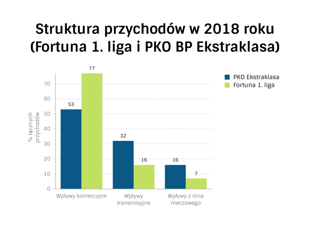 Patrząc na rok 2018, należy zauważyć, że przychody komercyjne klubów ekstraklasy wzrosły, natomiast transmisyjne i te pochodzące z dnia meczowego spadły. W połączeniu z brakiem europejskich pucharów i wątpliwym poziomem ligi tworzą się niepokojące proporcje. W jakim kierunku to zmierza?