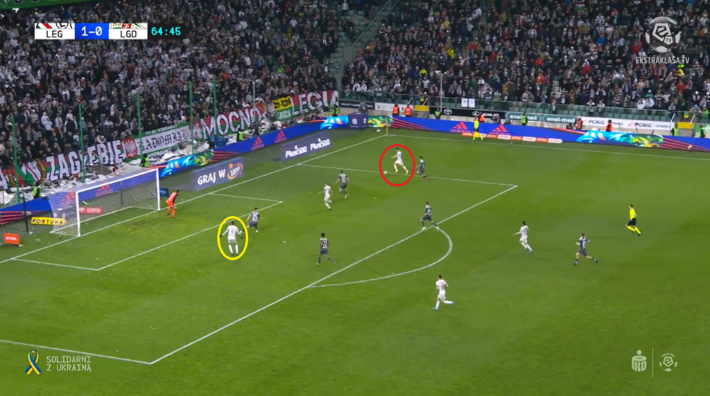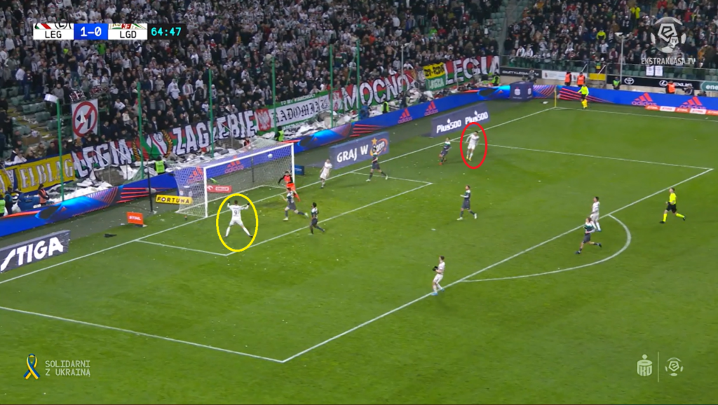 Dośrodkowanie przy drugim golu, jak już wspomnieliśmy na wstępie, także miało swój urok. Paweł Wszołek bowiem po krótkim rajdzie z prawej strony posłał idealne dośrodkowanie w pole karne na głowę Tomasa Pekharta, którego świetnie dostrzegł w polu karnym. Czechowi pozostało więc jedynie wykończyć akcję z 65. minucie i jako drugiemu wpisać się na listę strzelców.