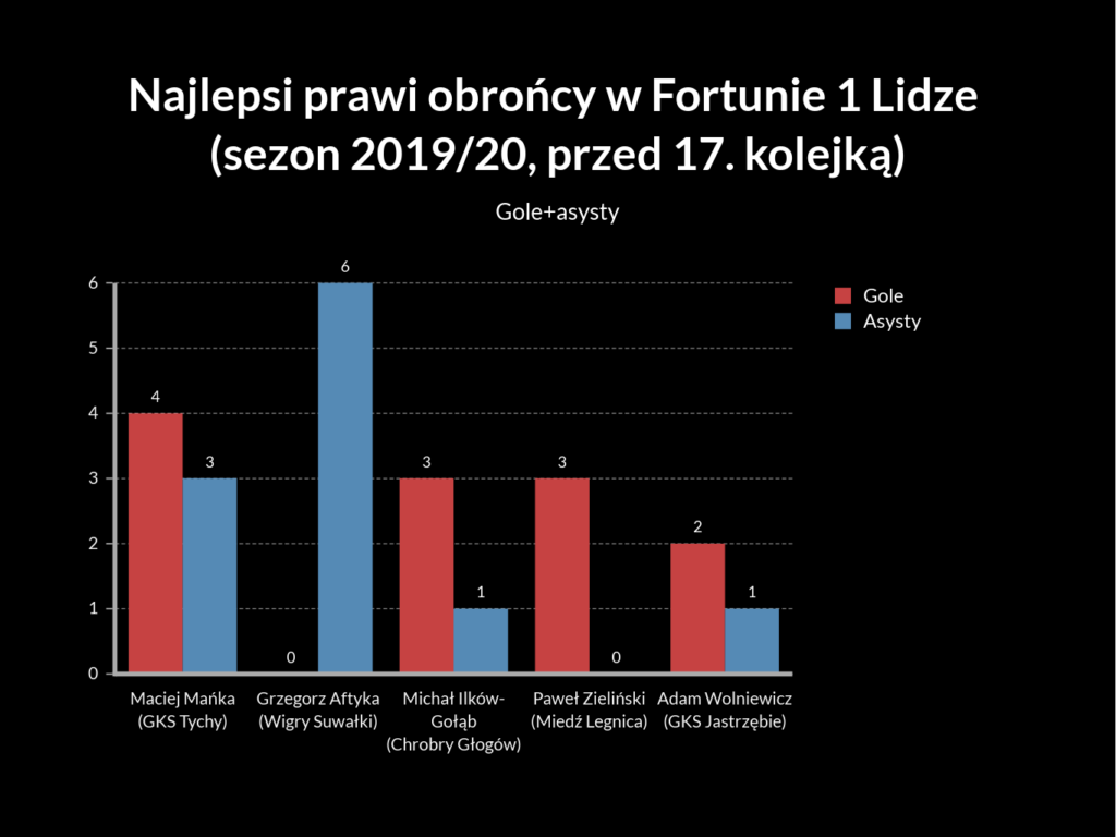 Czy będzie strzelał i asystował więcej? Jako (w tej chwili) drugi najskuteczniejszy zawodnik w zespole? Z pewnością! Prawy obrońca Miedzi Legnica gra w lidze dosłownie wszystko, od deski do deski (2. miejsce pod tym względem w drużynie), co przy ofensywnym nastawieniu ekipy trenera Nowaka musi pozwolić na „coś więcej”. Co to będzie? Po pięć goli i asyst na koniec sezonu 2019/2020 z tytułem najlepszego piłkarza w ekipie „Miedzianki” – to brzmi zachęcająco.