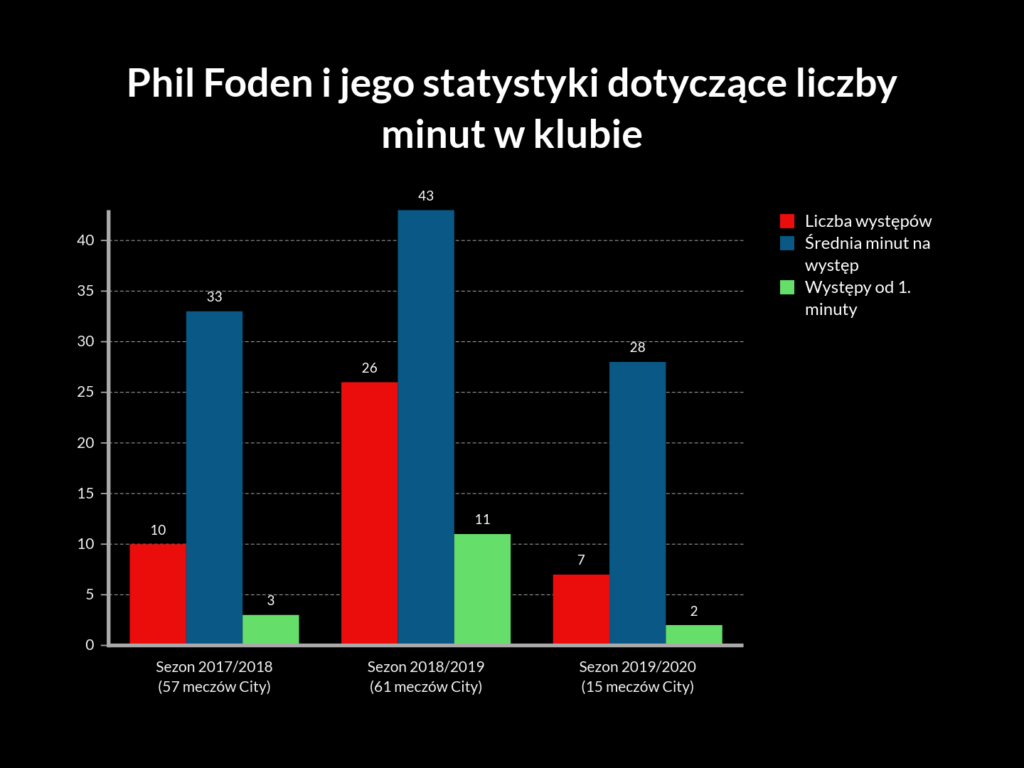Powyższy wykres wykazuje, że plan Guardioli na harmonijny rozwój istnieje i co ważne, jest skutecznie realizowany. Phil regularnie wspina się po szczeblach kadry pierwszego zespołu „The Citziens”, dzięki czemu częściej czuje smak murawy na Etihad. W debiutanckim sezonie 2017/2018 angielski pomocnik był jeszcze zawodnikiem nr 20 na liście, a dzisiaj? Jawi się jako czwarty lub piąty piłkarz za podstawową jedenastką. Niemała w tym rola kontuzji Leroya Sane, który pod swoją nieobecność niejako udostępnia swoje miejsce na ławce rezerwowych.