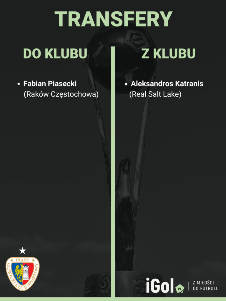 Na ten moment z Piasta odchodzi jednak tylko Aleksandros Katranis. Grecki defensor będzie reprezentował teraz barwy zespołu z MLS, Realu Salt Lake. Uwolnione środki pozwoliły włodarzom z Gliwic na zakontraktowanie nowego napastnika prosto z Częstochowy. Fabian Piasecki będzie miał za zadanie zwiększyć skuteczność „Piastunków”. Jesienią kulała ona na całej linii. I choć ostatnimi czasy w Rakowie zbierał nie najlepsze recenzję, to lepszy taki snajper niż desperackie łatanie dziur Jorge Felixem. W pierwszej części sezonu było tak dość często.