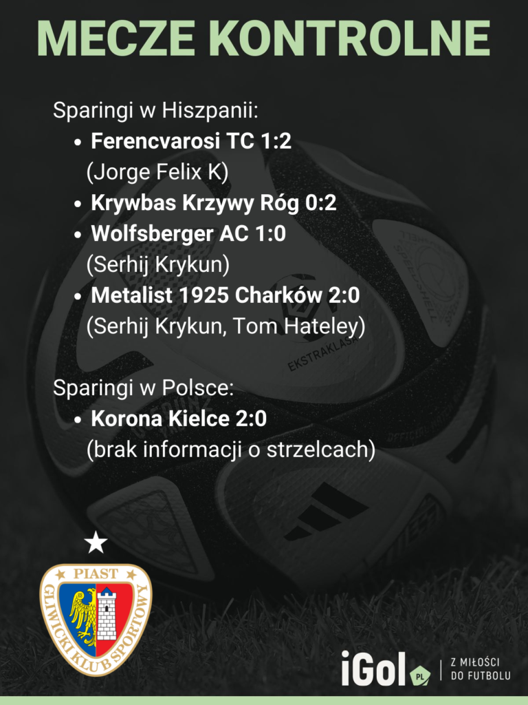W kolejnych dniach jego podopieczni ponieśli porażkę z ukraińskim Krywbasem Krzywy Róg oraz odnieśli skromne zwycięstwo z trzecim zespołem w Austrii z 2022 roku Wolfsbergerem AC. Na koniec hiszpańskiego zgrupowania Piast Gliwice rozprawił się jeszcze z Metalistem 1925 Charków, a po powrocie do kraju takim samym wynikiem z Koroną Kielce. Mecze kontrolne w wykonaniu „Piastunków” należy ocenić więc pozytywnie.