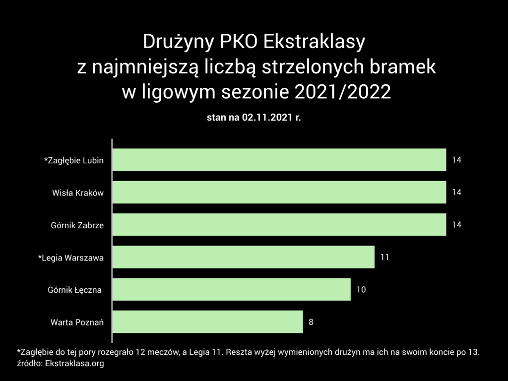 Jeszcze gorzej to wygląda, gdy zagłębimy się w statystyki warciarzy. W bieżącej edycji PKO Ekstraklasy strzelili oni jedynie osiem bramek w 13 spotkaniach. Połowę z nich ostatniej drużynie w tabeli, czyli Górnikowi Łęczna. Pod względem zdobytych bramek Piotr Tworek i jego podopieczni prezentowali się najgorzej z całej ligowej stawki.