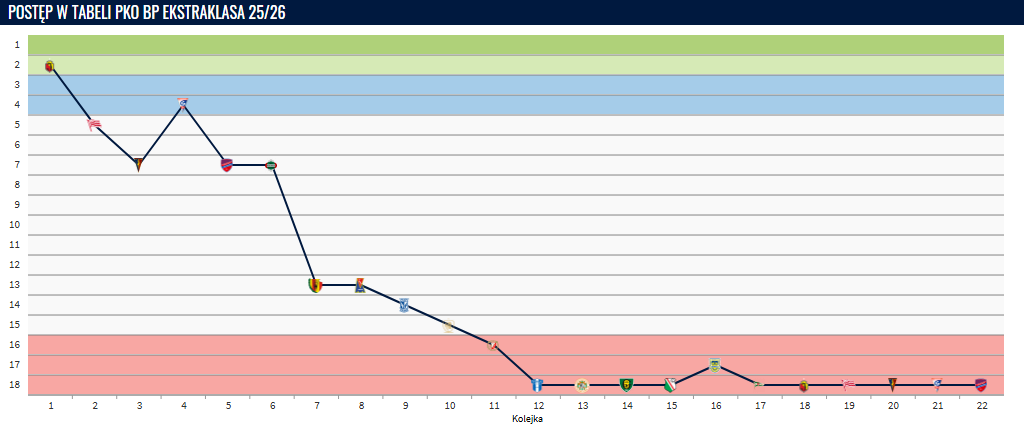 PKO BP Ekstraklasa w tym sezonie jest bardzo wyrównaną ligą. Stwierdzenie, że nie ma drugiej tak wyrównanej ligi na całym świecie, niezbyt mija się z prawdą. Jednak nawet z tak wyrównanej ligi, trzy zespoły będą musiały spaść do 1. ligi. Jak na razie trzeba przyznać jedno — żadna z ekip nie zasłużyła na spadek. Bo nawet ostatnia Termalica Bruk-Bet Nieciecza miała "momenty" i realnie ma szansę otrzeć się o 40 punktów w tym sezonie.