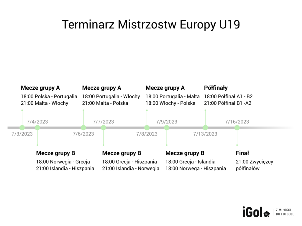 Jak można zobaczyć na podstawie wykresu, całe mistrzostwa zamkną się w mniej niż dwóch tygodniach. Choć złośliwi powiedzieliby, że niektóre piłkarskie turnieje w szkołach podstawowych mają bardziej rozbudowaną drabinkę eliminacyjną, to niech to nikogo nie zwiedzie, że są to rozgrywki o znikomym prestiżu. Skala trudności, jaką stanowi awans na tę elitarną imprezę, jest naprawdę wysoka. Trzeba przejść dwa etapy eliminacyjne, co dla niektórych mocniejszych piłkarskich państw okazało się zadaniem zbyt trudnym. W tym roku zabraknie chociażby Francji, Niemiec, a przede wszystkim ubiegłorocznych mistrzów Europy, czyli Anglii, która odpadła na etapie eliminacji. Dość powiedzieć, że Włosi są jedyną drużyną, która zagrała także na ubiegłorocznych mistrzostwach. Zatem żarty na temat niskiego poziomu turnieju należy odłożyć na bok i docenić sukces, jaki osiągnęli Polacy, którym po 17 latach udało się awansować na Euro U-19.