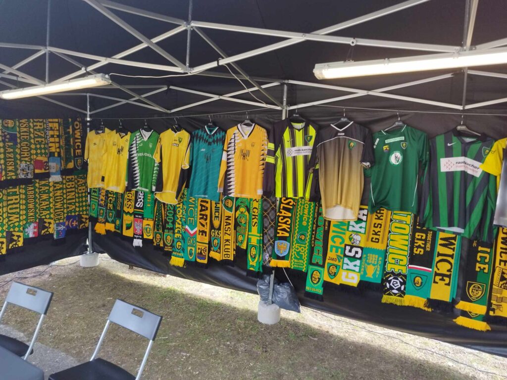 Po przekroczeniu bram stadionu każdy mógł otrzymać kolekcjonerski bilet. Tutaj postawiono na prostotę i motyw znany już z okolicznościowych koszulek. A jeśli o koszulkach mowa, to na terenie obiektu pojawiły się specjalne namioty, gdzie można było zobaczyć większość historycznych trykotów GKS-u. Później w tym miejscu z kibicami spotkały się legendy katowickiego klubu Janusz Jojko oraz Piotr Piekarczyk.