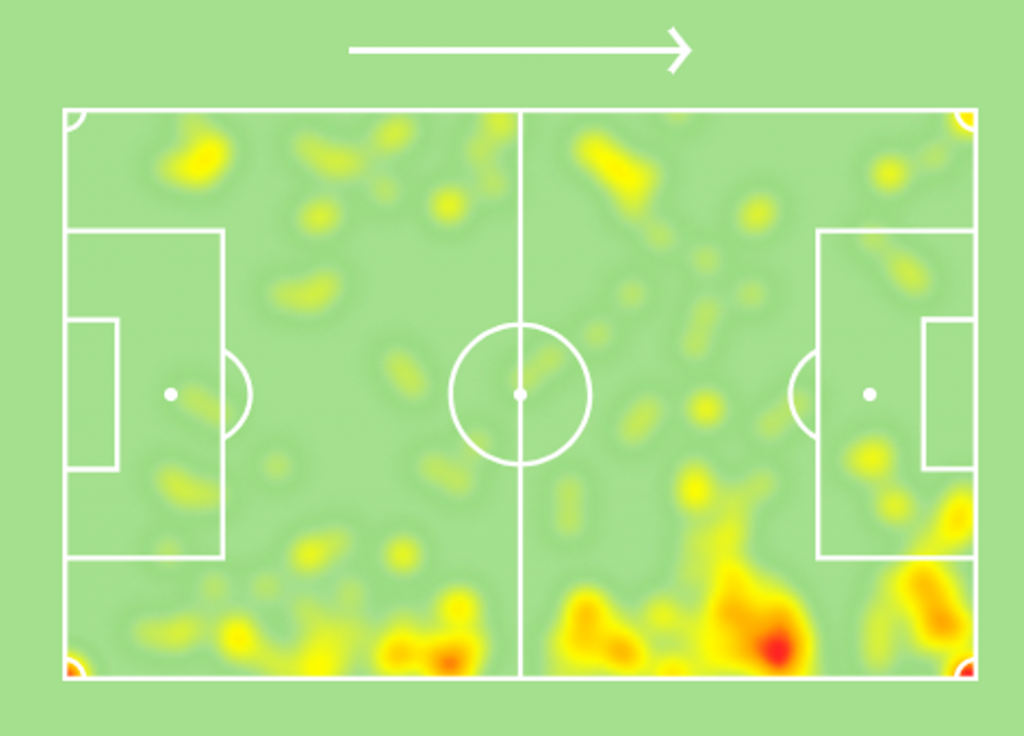Wspomnianą uniwersalność widać na niżej załączonej heatmapie ze wszystkich pięciu meczów Premier League, która jednocześnie obrazuje, jak Przemek jest pracowitym zawodnikiem.
