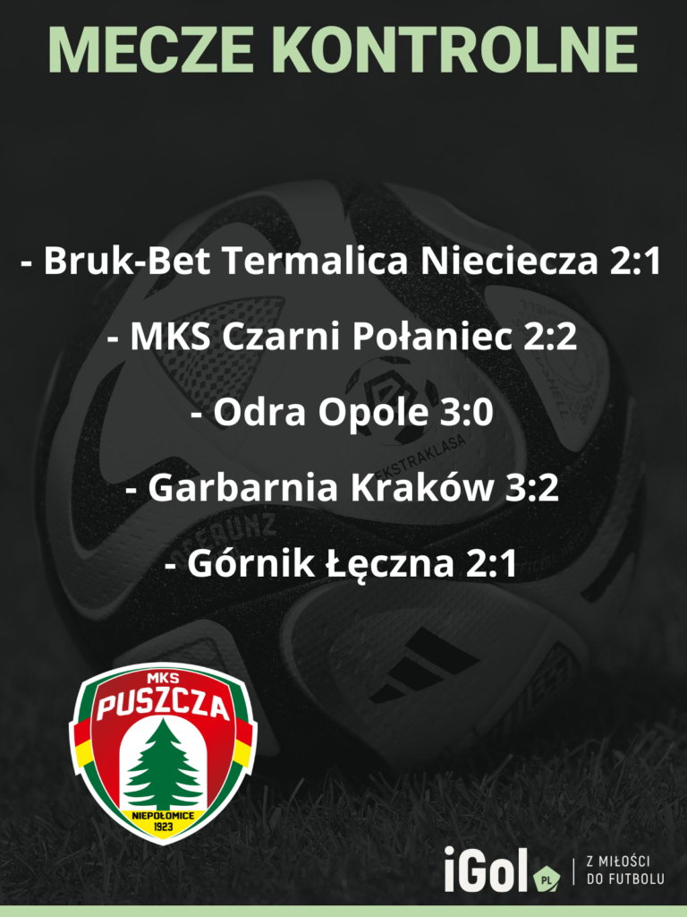 Puszcza nie należy do ligowych krezusów, nie dysponuje nie wiadomo jak potężnym budżetem. Dlatego przygotowania do nadchodzącej wielkimi krokami drugiej części sezonu spędziła w Polsce, przygotowując się na własnych obiektach oraz podczas krótkiego obozu w Skierniewicach (gracze z Niepołomic jako jedyni z ekstraklasy nie wyjechali z kraju).