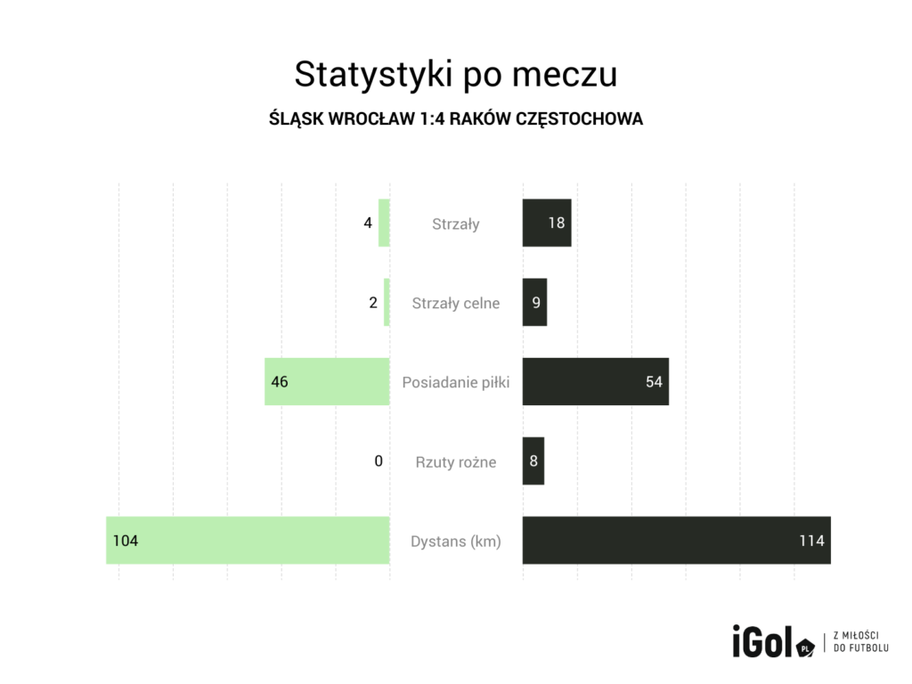 Od Rakowa Częstochowa właściwie każdy oczekiwał zwycięstwa. Przebieg meczu idealnie nam to zobrazował już od pierwszego gwizdka. Podział był prosty – Raków Częstochowa stale i mocno atakował, a Śląsk Wrocław kompletnie nie potrafił sobie z tym naporem poradzić. „Medaliki” były pod niemal każdym względem, dzięki wysokiemu pressingowi i wielkiej pracy na całym boisku, lepsze. Petr Schwarz i Patrick Olsen kompletnie nie mogli sobie poradzić właściwie z nikim z drużyny przeciwnej. Mieli nawet duże problemy z rozegraniem choćby kilku podań.