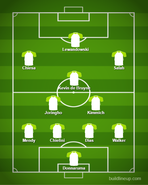 W naszym środku obrony bezpieczeństwa strzec będą doświadczony Giorgio Chiellini oraz młody Ruben Dias. O bezpieczeństwo w tym miejscu na boisku bać się więc na pewno nie musimy. Pobudki ich obecności w naszym zestawieniu są jednak zupełnie inne. Można się domyślić, że Chiellini wygrał ranking za formę na Euro 2020. Włoch był w końcu szefem szczelnej defensywy mistrzów Europy.