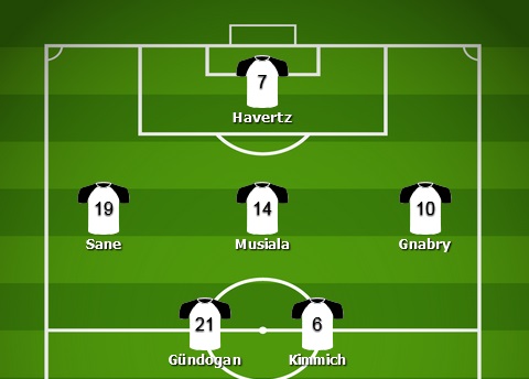 Obecnie w Niemczech bardziej dyskutuje się na temat zastępstwa Sane. Piłkarz Bayernu na wtorkowym treningu doznał urazu, który na pewno wyklucza go z pierwszego meczu. Może w jego miejsce wejdzie Thomas Müller lub Jonas Hofmann. Wracając do tego ustawienia, dla Kaia Havertza gra na tej pozycji nie jest niczym nowym. Już nawet w Chelsea bywał często ustawiany tak wysoko. Dodatkowo patrząc na mobilność piłkarzy ofensywnych, ustawienie 23-latka najwyżej pozwala na wiele kombinacji taktycznych z dużą wymiennością pozycji. Zwłaszcza że Musiala, Sane i Gnabry to piłkarze nieszukający tylko asyst, ale lubiący też wykańczać akcje ofensywne.