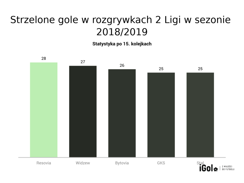 Apklan Resovia Rzeszów w dziewięciu spotkaniach schodziła z boiska w roli zwycięzcy. Do tego udało się jeszcze czterokrotnie podzielić punktami z przeciwnikami. Tylko dwukrotnie musiała obejść się smakiem i oddawała komplet oczek rywalom. Tak było podczas niespodziewanej porażki u siebie z Olimpią Elbląg (0:1), kiedy to rzeszowianom kompletnie nic nie wychodziło na stadionie przy ul. Wyspiańskiego. Podobnie było w Łęcznej, choć tam akurat „Sovia” powalczyła z Górnikiem i udało się chociaż strzelić gola – przegrana 1:2. Ale wróćmy do sytuacji po 15 kolejkach – rzeszowianie zgromadzili 31 punktów. Jeżeli chodzi o ofensywę, to nikt nie strzelił od nich więcej goli – 28 bramek. Ich defensywa też jest jedną z najlepszych w 2. lidze (12 straconych bramek), w której tylko Olimpia Elbląg wpuściła mniej goli o dwa.