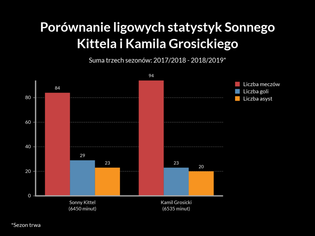 Mati był bardzo przekonujący w swojej narracji. I powiedziałbym tak: być może to jest taki pomocnik, którego nie mamy, ale jak zestawisz jego liczby z pierwszej i drugiej ligi, widać zasadniczą różnicę. Bo z tego co pamiętam, w drugiej lidze niemieckiej Sonny Kittel strzelił 30 bramek, natomiast w Bundeslidze tylko kilka. Przy podobnej liczbie meczów.
