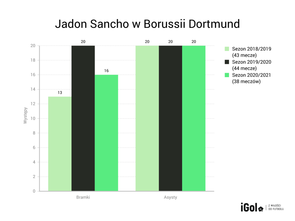 Rok później Jadon Sancho ugruntował swoją pozycję w świadomości kibiców europejskiego futbolu, jeszcze poprawiając swoje statystyki. Jego grę cechowała spora dojrzałość, notował konkrety niemal w każdym spotkaniu. Ostatni sezon w Bundeslidze był odrobinę słabszy przez uraz, który wyłączył go z gry na prawie dwa miesiące.