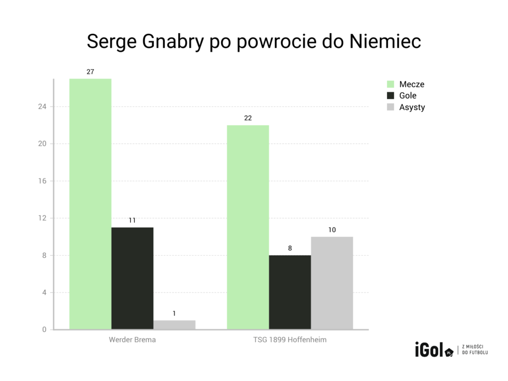 Idealnie dogadywał się z Julianem Nagelsmannem, którego nazywał swoim mentorem, mimo że był on od niego starszy tylko o osiem lat. Serge Gnabry jest niesamowicie uniwersalnym piłkarzem, w Hoffenheim nie miał żadnego problemu z grą na skrzydle, wahadle, był gotów grać także jako boczny obrońca. „Wieśniaki” z nim w składzie zajęły wówczas trzecie miejsce w Bundeslidze, najlepsze w historii, a Gnabry zdobył dziesięć goli i zanotował osiem asyst.