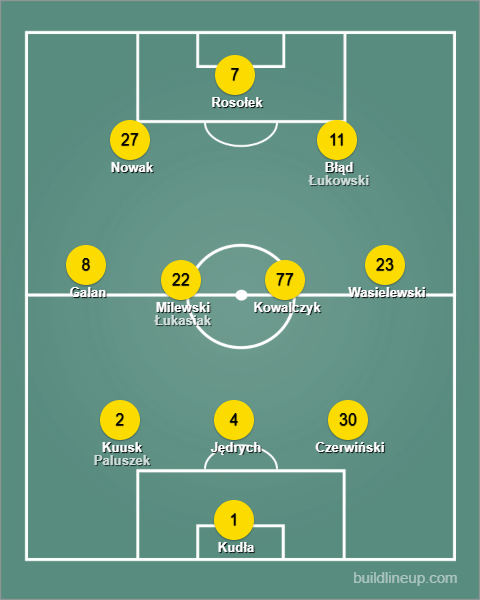Pewną zagadką jest obsada ofensywnej trójki. Najprawdopodobniej na spotkanie z Rakowem wyjdą Nowak, Błąd i Rosołek. W odwodzie pozostają jednak nowi piłkarze – Łukowski, Wędrychowski czy Aleksander Buksa. Rywalizacja będzie jeszcze większa, gdy do pełnej dyspozycji powróci 31-letni Adam Zrelak.