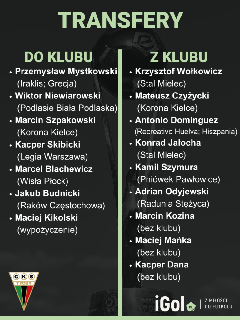 Spójrzmy zatem na pełen bilans transferowy GKS-u Tychy tego lata: