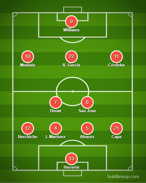 Przy braku jakichkolwiek ruchów na rynku transferowym trudno spodziewać się, by w wyjściowej jedenastce zaszły jakieś poważniejsze zmiany. Drużyna najczęściej powinna wychodzić ulubioną formacją trenera Garitano z dwójką defensywnych pomocników mających przed sobą ofensywny kwartet.