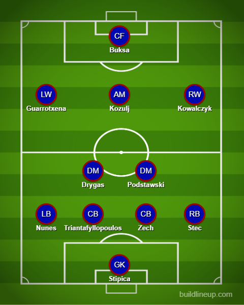W przypadku kontuzji Adama Buksy niewiadomą może też być pozycja napastnika. Miejsce Polaka mogą zająć niepewny Michalis Manias, bardzo słaby w ostatniej kampanii Benyamina i Adrian Benedyczak. Reprezentant Polski do lat 20 wciąż czeka na pierwszą bramkę na poziomie ekstraklasy.