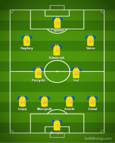 Największe zmiany czekają formację defensywną. W naszym ustawieniu znalazło się miejsce dla obu nowych nabytków Arki Gdynia – Ołeksandra Azackiego oraz Dawida Gojnego. Obok nich stawiamy na sprawdzonych Michała Marcjanika oraz Jerzego Tomala. W bramce niezastąpiony Kacper Krzepis. W środku pola postawiliśmy na duet Adrian Purzycki – Janusz Gol.