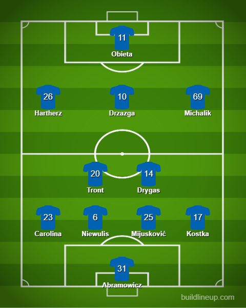 Wyżej ustawieni będą Hartherz, Drzazga oraz Michalik. Cała trójka dołączyła do drużyny przed startem sezonu, lecz nie powinni oni mieć problemów z wywalczeniem sobie miejsca w pierwszym składzie. W zanadrzu trener Bella będzie miał do dyspozycji na tych pozycjach m.in. Kamila Antonika, Mehdi Lehaire czy też Patryka Pierzaka.